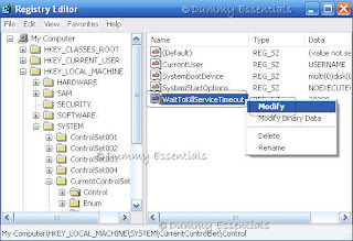 Select 'WaitToKillServiceTimeout' from the right side of the window and Right click on it to select 'Modify'