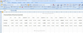 In the above database we are trying to present the financial data of Dummy Essentials. The data is per quarter. But as the quarter values are reached by adding up 3 months hence we need to plot those data as well, as shown below.