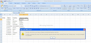 Followed this, column B & D will get protected and no one will be able to edit it till the time it is unprotected. In case some one tries to edit these two columns a message, as shown below, will pop up.