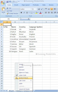 Once we complete our work, we wish to protect our worksheet. Let us learn, how easily and quickly we can protect our worksheet.
